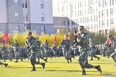白城医学高等专科学校高度重视新生入学第一课——军训。新生通过认真严格的军训,不仅掌握了必备的军事知识和技能,而且还培养了顽强拼搏的坚毅品格和优良的军人作风,同时还增强了同学间的团队合作精神。图为学生正在接受军训。 陈宝林摄