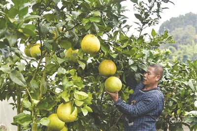10月31日,遵义市槐安仁慧果蔬专业合作社的社员在地里采摘柚子。