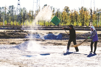 近年来,通榆县瞻榆镇不断加大种植业结构调整力度,从大田作物向精品经济作物演变,一村一品让农产品销路广、价格好。图为瞻榆镇向阳村农民正在打葵花。 本报记者李晓明摄