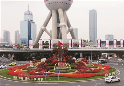 近日,上海浦东陆家嘴环岛中央“浦东开发开放30周年”大型立体花坛布置完成。该花坛面积约1800平方米,选用了一串红、玉龙、三角梅、银叶菊、茶梅和报春花等“暖色”花卉。错落有致的立体花卉和“浦东开发开放30周年”字样格外醒目。 新华社记者陈飞摄