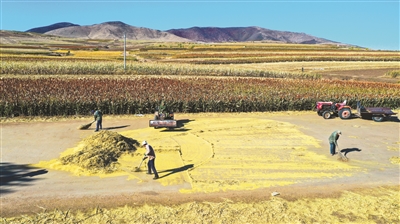 洮南市万宝镇敖牛山下种植的谷子远近闻名,近几年又专门成立了合作社,倾力打造“敖牛山”品牌。由于谷子品种优良,种植得法,所产小米畅销全国各地。 本报记者李晓明摄