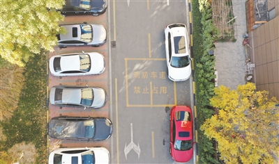 全国消防日前夕,记者走访天津市多个小区,看到不少消防通道出入口都挂有显眼的“消防通道 严禁占用”标牌,但仍有不少车辆违规停放。有些小区的消防车道被随意占用,地上醒目的黄色“消防车道 禁止占用”警示语成为摆设。祸患藏于忽微,消防通道关乎千家万户的生命财产安全,切莫让乱停乱放贻误事故发生时的最佳救援时机。 新华社记者李然摄