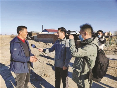 近年来,我省实施的河湖连通工程让镇赉县的城市、湿地受益匪浅,如今的镇赉湿地、芦苇、香蒲等植物达300多种,每年近300种鸟类在此繁衍、停歇。图为11月9日,中国新闻社采访团在镇赉县东屏镇采访爱鸟护鸟农民。 潘晟昱摄