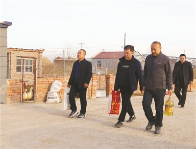 11月24日,东屏镇党委和政府相关人员、各级包保部门和驻村工作队员开展“访民情、送温暖、话扶贫、感党恩”活动,入户走访贫困户,推动整治环境卫生、销售农产品等各项脱贫攻坚工作再落实,确保脱贫攻坚工作圆满收官。图为镇党委成员到包保的蒙古索口村入户走访贫困户,送去米、面、油等生活物资。 王岩摄
