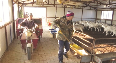 近年来,大安市丰收镇得辉农民专业合作社通过“合作社+贫困户”模式,引导贫困户入股,为具有一定劳动能力的建档立卡贫困户提供就地就近就业帮扶,由输血式扶贫变造血式扶贫,带动贫困群众增收。图为社员在合作社的羊舍里工作。 鲁凤洋摄