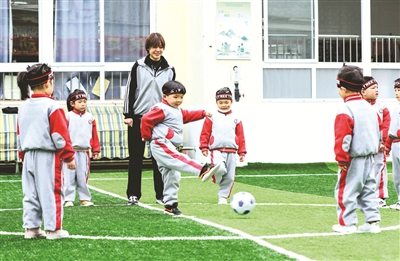 当日,浙江省长兴县中心幼儿园开展以“玩转足球,悦动校园”为主题的趣味足球嘉年华活动。孩子们通过足球操、传递足球、绕障碍等游戏,培养对足球的兴趣,感受运动的快乐。 新华社记者徐昱摄
