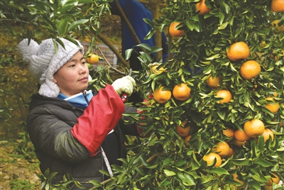 12月9日,村民在贵州省丹寨县排调镇方胜村椪柑种植基地采摘椪柑。