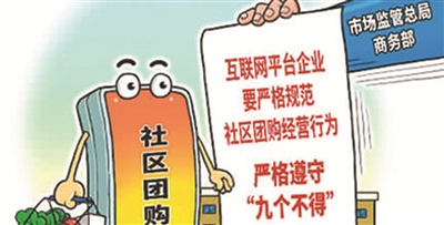 近日,国家市场监管总局联合商务部组织召开规范社区团购秩序行政指导会,阿里巴巴、腾讯、京东、美团、拼多多、滴滴等6家互联网平台企业参加。会议深入学习贯彻中央经济工作会议精神,落实党中央、国务院关于推动互联网平台经济健康发展的一系列决策部署,依法加强社区团购价格行为和反不正当竞争监管,规范社区团购市场秩序,维护公平竞争市场环境,确保民生得到有效保障和改善。会议强调,互联网平台企业要严格规范社区团购经营行为,严格遵守“九个不得”。