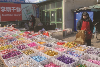 “年味”悄悄向我们走来,白城市在严防新冠肺炎疫情的当下,组织购进各类百姓需求的年货。图为白城市长青市场50多种糖果已经上市。 本报记者王野村摄