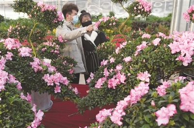 2月2日,顾客在甘肃省临夏县一花卉市场选购鲜花。