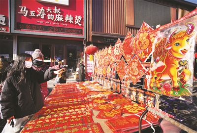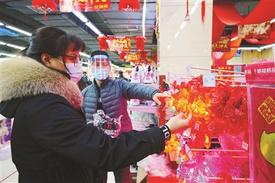 春节将至,镇赉县城乡各地节日市场年货充足、平稳有序,广大群众戴口罩、保持一米线购买年货,喜迎新春佳节。大红灯笼高高挂,处处遇见中国红;大红福字闪闪亮,处处看见中国红。