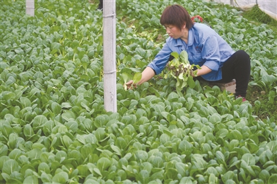 2月22日,高虹镇崇阳村蔬菜基地种植户在采收蔬菜。