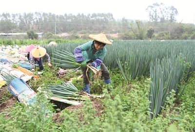 近日,漳浦大葱进入采收季。近年来,福建省漳州市漳浦县引进高产、优质、抗病的大葱新品种,不断提高大葱的产量和质量,满足国内国外市场的需求。 新华社记者林善传摄