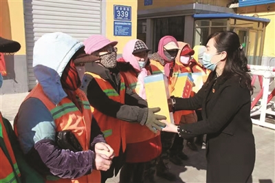 图为镇赉县妇联工作人员与苇海爱心公益协会志愿者共同走访慰问节日期间工作在一线的女职工代表和社区女职工,为她们送去节日的祝福和慰问品。 陈偲聪 孔令娟摄