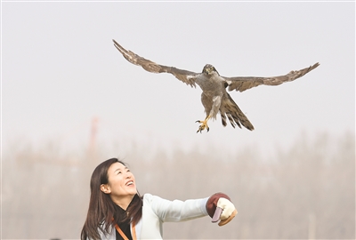 3月14日,沈阳猛禽救助中心志愿者将救助的苍鹰进行放飞。