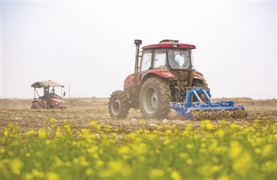 3月13日,河北省武安市邑城镇白府村农民使用农业机械在田间翻耕土地。