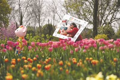 3月13日,游人在南京市溧水区梦华苑自拍留念。