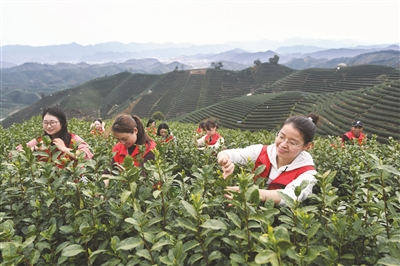 3月15日,志愿者帮助茶农采摘春茶。
