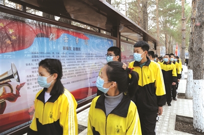 图为镇赉县蒙古族中学青年团员代表到烈士陵园开展“缅怀革命先烈 弘扬革命精神”祭扫活动。