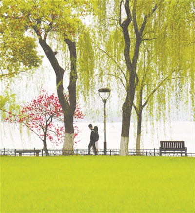 如诗中“游子寻春半出城”描绘的那般,人们游春赏玩大多出城来到西湖苏堤,为何选择这里?南宋时期的西湖,特别是在春暖花开的清明时节,苏堤上桃花盛放,杨柳依依。不仅如此,那时在苏堤举行的各种民俗娱乐活动也相当丰富:有玩杂耍、翻筋斗、穿铁圈、踢毽子、放风筝、吹笙箫……到了清代,苏堤依然是杭州人清明时节游春的娱乐场所。不过自2011年“杭州西湖文化景观”被列入《世界遗产名录》以来,西湖加强了各方面管理保护,如今清明节,苏堤上只见如织游人共赏春色,已见不到玩杂耍等各类民俗活动。