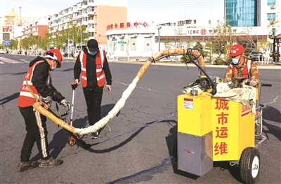 天气转暖,白城市城市运维建设有限公司抢抓有利时机,对城市街路破损路面进行修理维护,给市民创造一个良好的出行环境。 本报记者李晓明摄