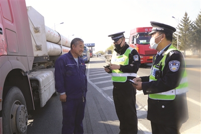为预防道路交通事故,严控春耕生产期间的道路交通秩序,白城市公安局交巡警支队联合交通部门积极开展公路治理货运车辆超载超限违法行为。今年以来,全市已经查处超载超限违法行为1308起。图为交巡警工作人员在白城市公安局交巡警支队平白治超站检查过往车辆。 于晓娜 本报记者张殿文摄