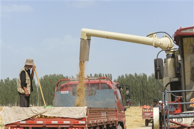 “三夏”时节,新疆南疆地区冬小麦陆续成熟,进入收获阶段,各地小麦陆续开镰收割。全区夏收工作也将由南至北陆续展开。 新华社记者高晗摄