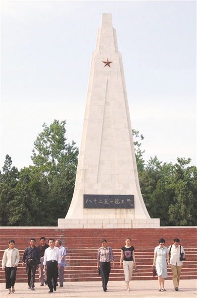 “我成长在刘老庄乡,当兵在‘刘老庄连’,我一定苦练打赢本领,争取为祖国再立新功!”刘老庄籍战士郑澳辉,掏出一份入党申请书,庄重地放在八十二烈士纪念碑前。