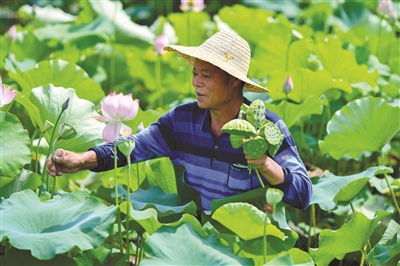 7月11日,在湖南省湘潭市雨湖区姜畲镇联映村,莲农在荷塘采摘莲蓬。盛夏时节,湖南省湘潭市雨湖区姜畲镇联映村的莲蓬逐渐成熟,当地莲农忙着采摘莲蓬、荷花。近年来,当地大力发展“莲子经济”,特色产业带动村民增收致富。 新华社记者陈泽国摄
