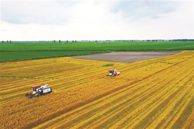7月17日,白城市第一季燕麦收割开镰,预计单产比去年提高10%左右。图为白城市农科院燕麦良种繁育示范基地收割现场。 本报记者李晓明摄