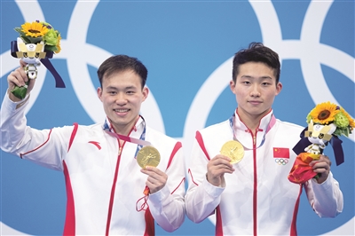 当日,在东京奥运会男子双人三米跳板决赛中,中国选手谢思埸/王宗源获得冠军。