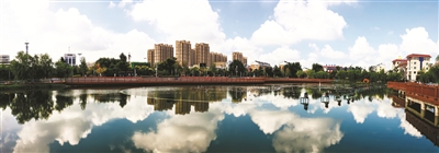 随着城市建设管理工作不断推进,我市城区公园、广场面貌焕然一新。炎炎夏日,楼阁水上建、人在画中游的美景随处可见。 本报记者李晓明摄