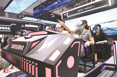 8月23日,观众在2021智博会上通过VR技术体验重庆美景。