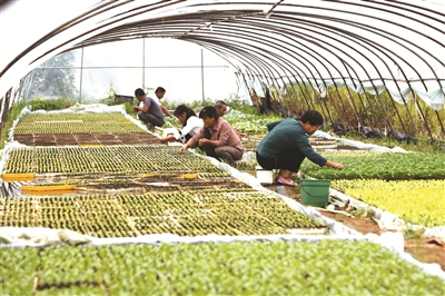 地处洪泽湖畔的江苏省宿迁市泗洪县孙园镇水资源丰富,土地肥沃,蔬菜种植是当地主导产业之一。该镇采取“合作社+基地+农户”方式,通过大棚水上育苗,年培育各类蔬菜苗5亿多株。与传统育苗方式相比,水上育苗不但节约土地、病虫害少,而且育苗周期短、蔬菜成活率高。培育的菜苗除满足本地菜农需求,还供应周边乡镇,蔬菜生产由“一季一菜”变成“一季多茬”,有力促进了农民增收。 新华社发(许昌亮摄)