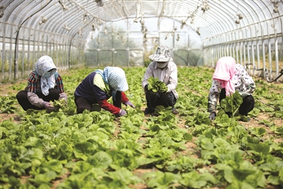 宁夏银川市贺兰县洪广镇欣荣村是一个“十二五”生态移民搬迁安置村,近年来,欣荣村依托区位优势发展香菇、番茄、红树莓、葡萄等特色设施果蔬产业,助力农民增收致富。目前,欣荣村有180余栋大中拱棚,并建设了配套冷库,设施果蔬产业为150余名群众提供了稳定的就业岗位。 新华社记者杨植森摄