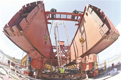 当日上午,由中铁十一局承建的新建福厦铁路湄洲湾跨海大桥最后一孔移动模架现浇梁开始浇筑,并将于当晚结束浇筑,完成首次海上高铁架梁任务。下一步,该模架将整体后移,在海岸上进行拆解,运输至下一工程项目,继续发挥作用。这个被称为“高空移动的桥梁预制工厂”的高铁移动模架,可行进在已完成的桥墩进行高铁箱梁现场浇制施工,最大承载重量达1200吨,可抵御14级台风,解决了“千吨级”40米箱梁海域现浇施工的难题,是我国目前最大跨度的高铁移动模架。