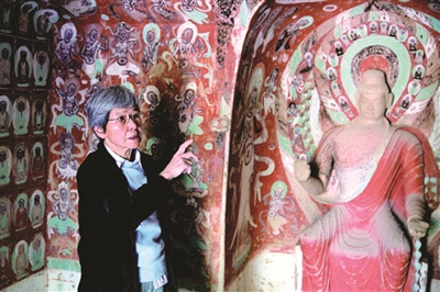 她是敦煌研究院名誉院长樊锦诗。1938年,祖籍杭州的樊锦诗出生在北京,自1963年大学毕业后,她便开始了与莫高窟长达半个多世纪的相守。在她和同事的努力下,莫高窟在1987年成为中国首批进入世界文化遗产名录的遗产地,并逐步成为世界文化遗产保护和利用的全球典范。