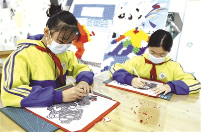 近日,河北省邢台市襄都区立德小学开展“燃情冰雪,助力冬奥”校园冰雪节活动,通过创意刻纸、创意瓶盖画、打冰壶等形式,激发青少年参与冰雪运动的热情。 新华社发(张驰摄)