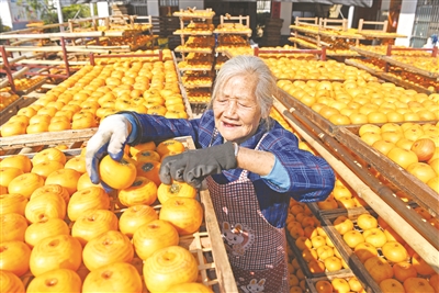 11月29日,村民在恭城瑶族自治县嘉会镇晾晒月柿。