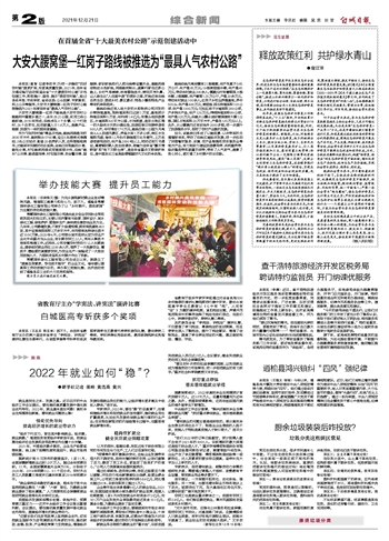 本报讯(翟智 记者李政孚)为进一步推动“四好农村路”提质扩面,向更高质量发展,2021年,吉林省交通运输厅启动首届全省“十大最美农村公路”示范创建工作,积极推介、宣传、展示“美丽农村路”。经过县级申报、市级审核、省级优选、公众投票、专家复核、网上公示等程序,大安市大腰窝堡—红岗子农村公路被推选为2021年度吉林省“最具人气农村公路”。