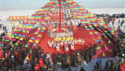 “哈尔淖冬捕的大网醒好了,开始祭湖了!”伴随着“鱼把头”一声洪亮的号子,在渔工们的努力合作下,长长的大网,满满的鱼获从厚厚的冰层之下被拉上冰面,霎时间,万顷冰湖,鱼跃欢腾!