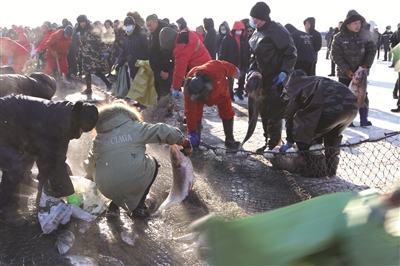 截至当晚,此次冬捕已经出鱼10万公斤,今年冬捕产量预计在30万公斤以上。