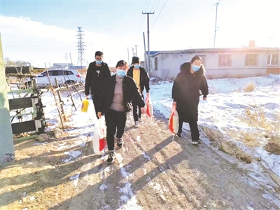 元旦佳节临近,为让辖区特扶群体感受到社会大家庭的温暖,近日,洮南市通达街道通途社区开展了“冬日暖行”慰问活动。社区工作人员为辖区21户特扶家庭送去了米、面、油等生活必需品和祝福,鼓励他们要以积极乐观的心态面对生活,有困难随时与社区沟通联系。 王莉 本报记者 张芙摄