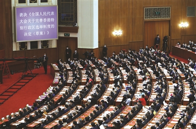 3月11日,十三届全国人大四次会议表决通过《全国人民代表大会关于完善香港特别行政区选举制度的决定》。这是继制定实施香港国安法后,中央依法治港的又一重大举措,是完善“一国两制”制度体系、落实中央对香港全面管治权的具体体现,为全面落实“爱国者治港”原则提供了更加坚实的制度保障。3月30日,十三届全国人大常委会第二十七次会议通过了新修订的香港基本法附件一和附件二。随后,香港特别行政区完成本地立法。新选举制度为推进香港民主稳步发展、实现良政善治,促进“一国两制”实践行稳致远打下坚实基础。