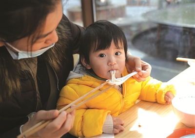 2021年12月31日,市民在中华米粉街品尝米粉。