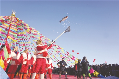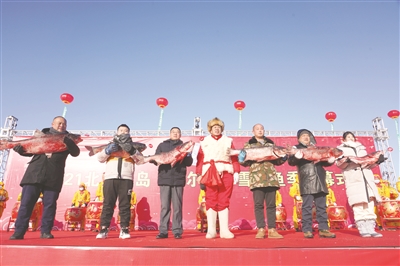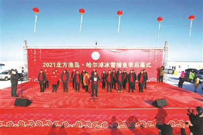 本报讯(林淑庆)这边出鱼,那边炖鱼、煮鱼肉水饺,大铁锅旁围满了品尝的游客;文艺节目助兴,滑冰表演、抽冰猴、滑冰车、冰上自行车和雪地摩托等冰上娱乐项目火热进行——2021年12月29日,以“冰雪捕鱼季 激情迎冬奥”为主题的镇赉县“2021中国北方渔岛·哈尔淖冰雪捕鱼季”盛大启幕,现场聚集了近2万名游客,共享鱼跃人欢的丰收美景。