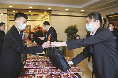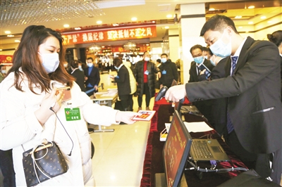 上交核酸检测报告,查验“吉祥码”“行程码”、测量体温……报到现场,工作人员认真落实各项防疫措施,有条不紊地为委员们办理报到手续、分发会议资料,现场气氛热烈、秩序井然。