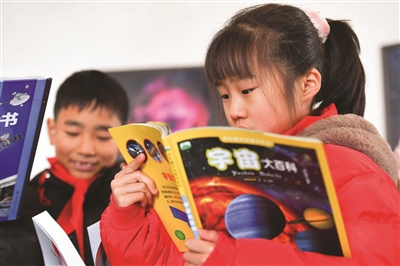 1月19日,在湖南省浏阳市小河乡的星河天文台,学生阅读天文科普图书。