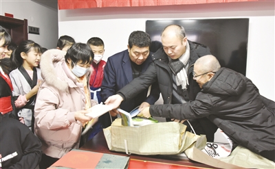送春联之外,洮北区委宣传部的工作人员还将精心挑选、种类丰富的图书送到居民手中。