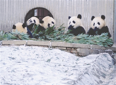 新春伊始,生活在中国大熊猫保护研究中心卧龙神树坪基地内的大熊猫们享受着冰雪带来的欢乐。 新华社记者刘坤摄